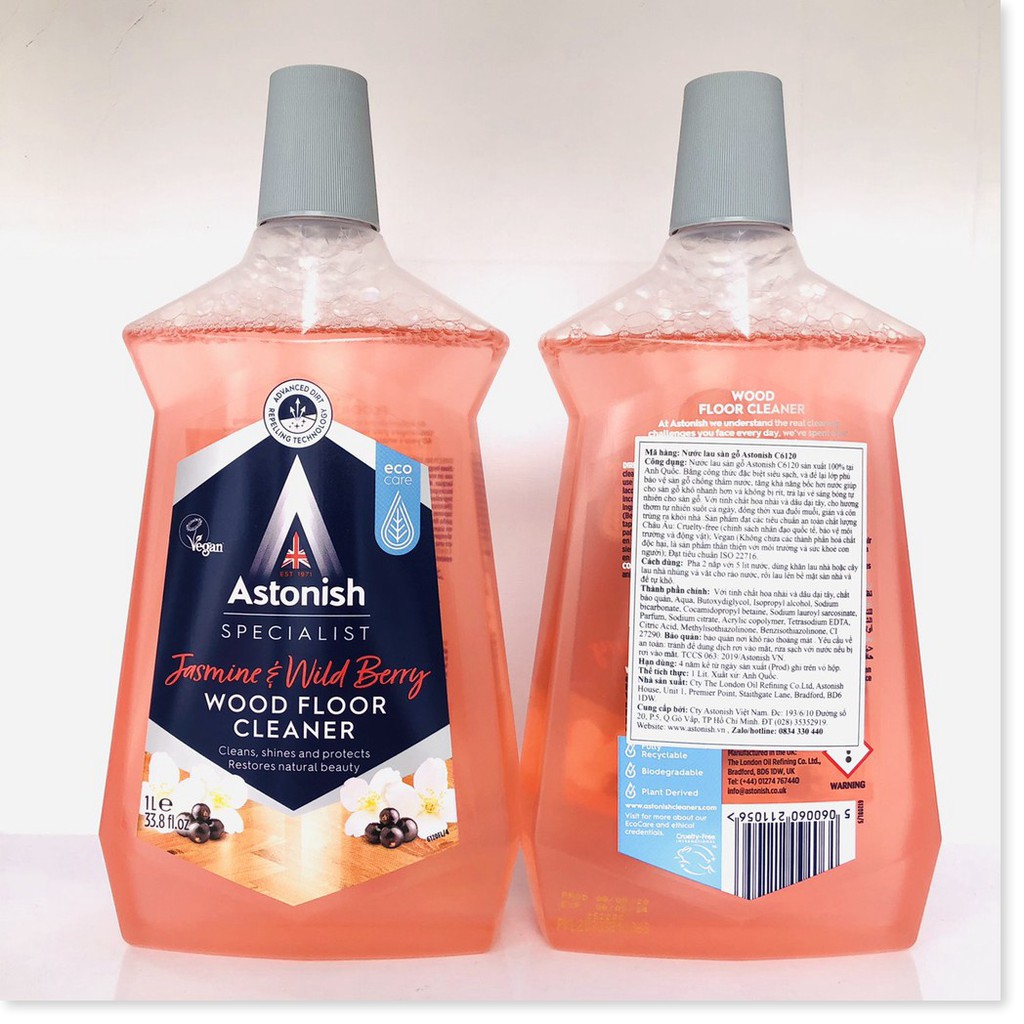 Hàng Nhập Chính Hãng Astonish Từ UK Anh Quốc Nước lau sàn gỗ tinh chất hoa nhài và dâu dại Astonish C6120 - 1000mlNước lau sàn gỗ Astonish C6120 sản xuất 100% tại Anh Quốc. Bằng công thức đặc biệt siêu sạch, và để lại lớp phủ bảo vệ sàn gỗ chống thấm nước, tăng khả năng bốc hơi nước giúp cho sàn gỗ khô nhanh hơn và không bị rít, trả lại vẻ sáng bóng tự nhiên cho sàn gỗ.