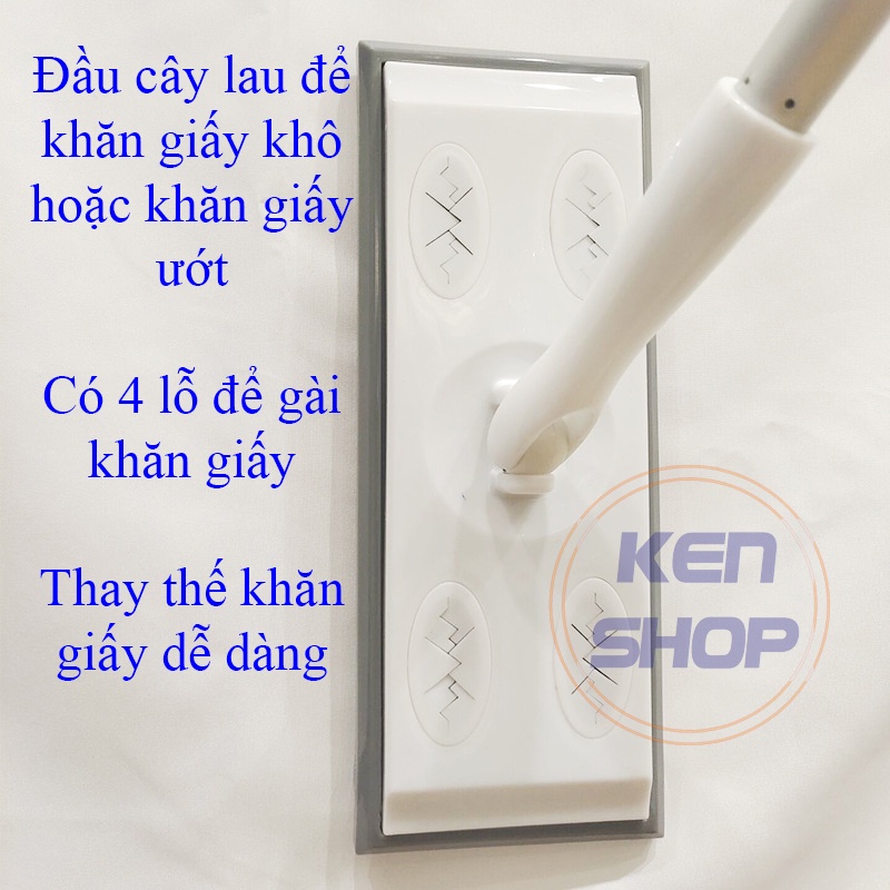Cây lau sàn Ken Shop dùng khăn giấy khô hoặc khăn giấy ướt sử dụng 1 lần thay thế dễ dàng, tiện lợiThông tin sản phẩm: