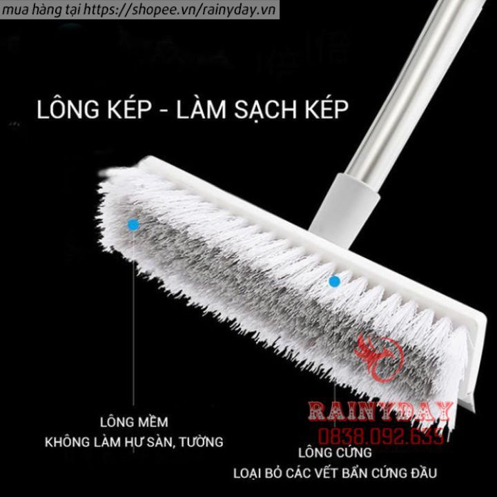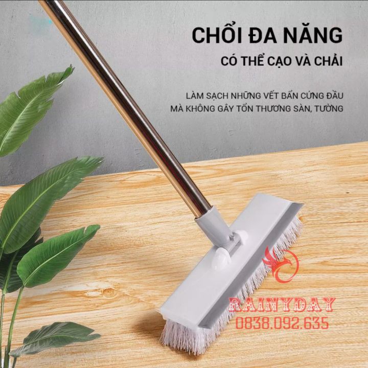 Cây chổi lau quét chà gạt nước sàn nhà thông minh phòng tắm 2 đầu đa năng cán inox 3 mức chiều dàiĐẶC ĐIỂM NỔI BẬT