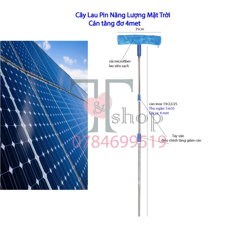 Nhà cửa & Đời sống > Dụng cụ chăm sóc nhà cửa > Chổi || Cây Lau Tấm Pin Năng Lượng Mặt Trời Homeinno Dài 3met/4metCòn hàng