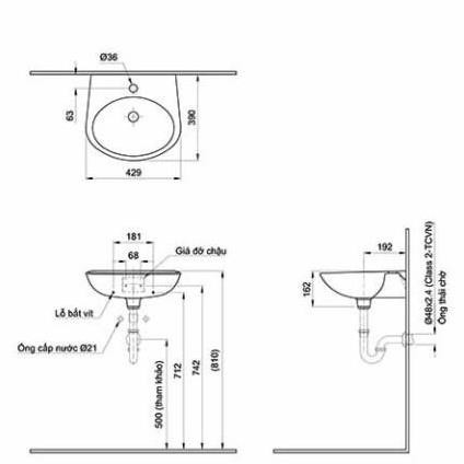 Lavabo Treo Tường Inax L-283V (chưa bao gồm vòi , xả) ko có xả trànNhà sản xuất: Inax