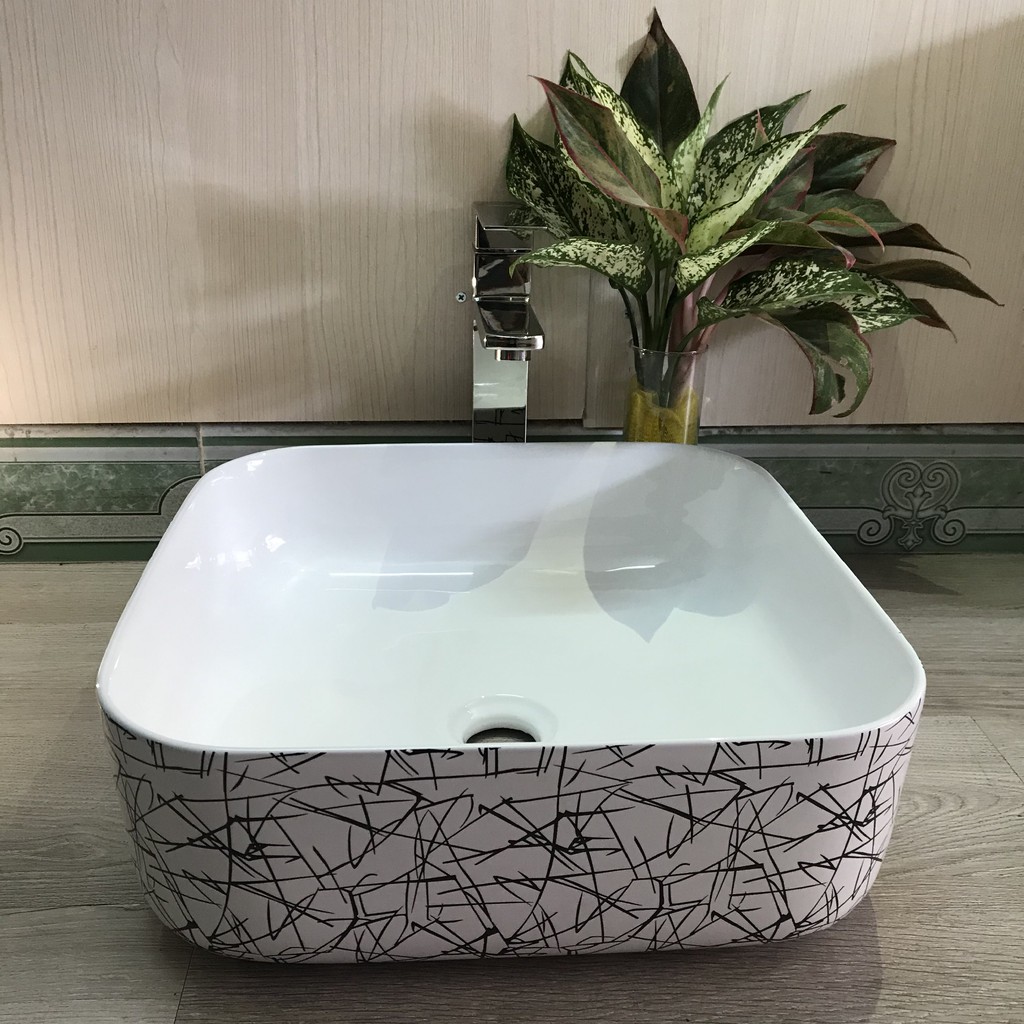 Lavabo vuông họa tiết kẻ sọc đen