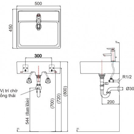 Thông tin cở bản chậu rửa mặt lavabo Inax L-293VKích thước (dài x rộng x cao): 500 x 450 x 155 mm