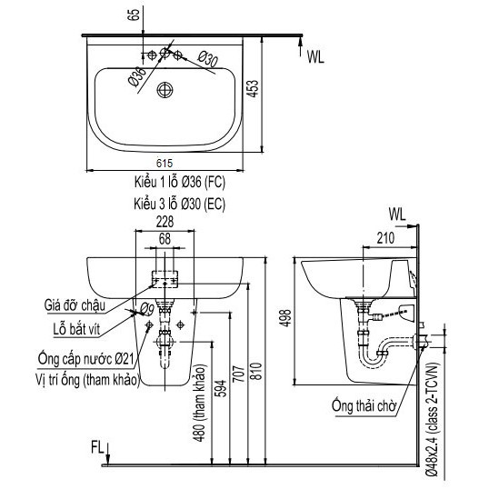 Lưu ý: chưa bao gồm vòi xả và chân