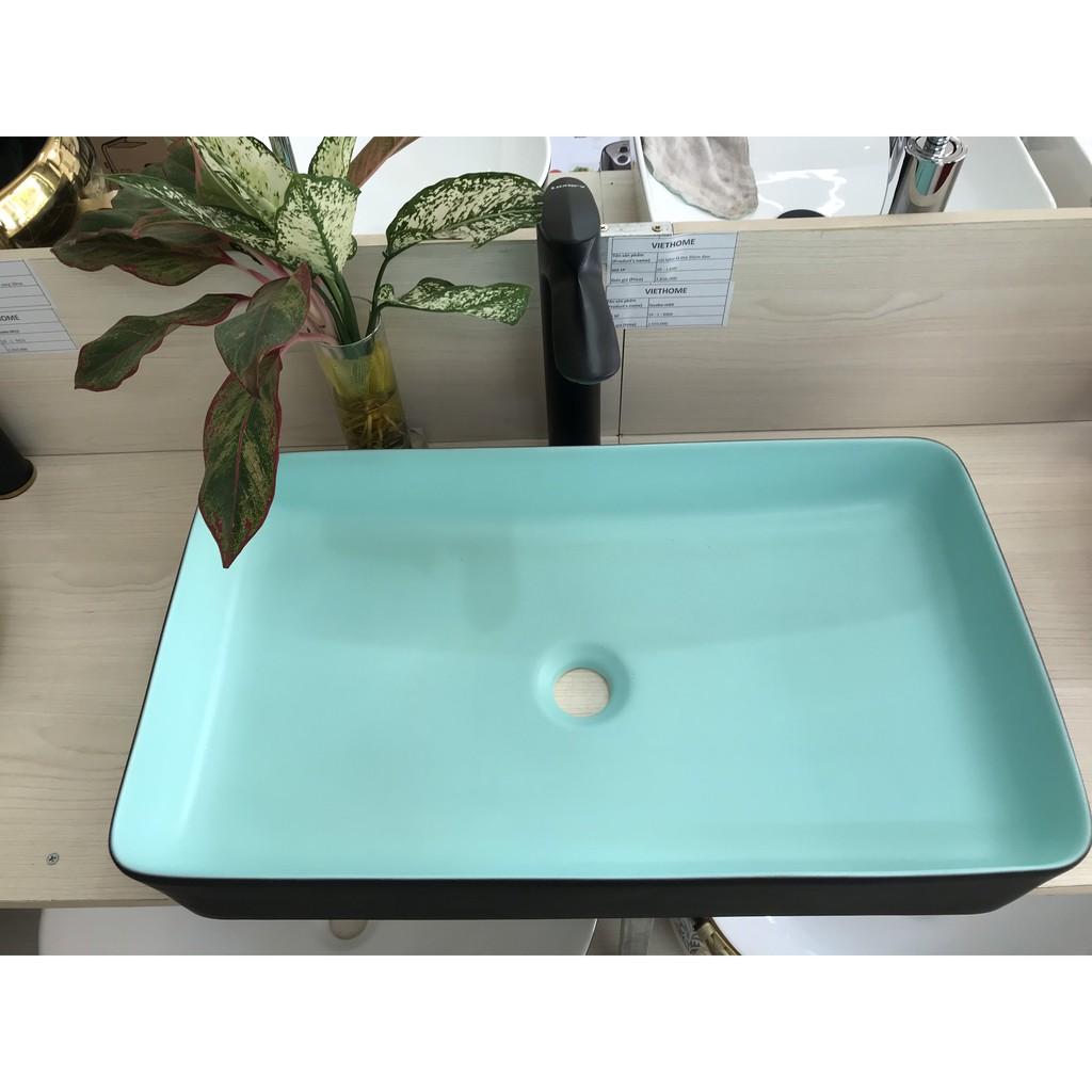 Lavabo đặt bàn đá xanh ngọc màu đen Kích thước: 63x35x11cm Chất liệu: Sứ LƯU Ý: SẢN PHẨM KHÔNG KEM VÒI VÀ NẮP XẢ ...- Giao hàng toàn quốc