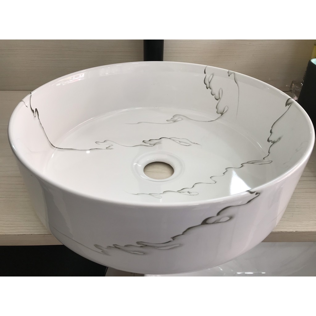Lavabo đặt bàn đá tròn màu trắng họa tiết mây trời
