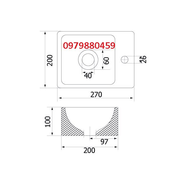 LƯU Ý: Chưa bao gồm vòi và bộ xảCHẬU LAVABO ĐẶT BÀN SIÊU NHỎ, DÙNG CHO PHONG TẮM NHỎ