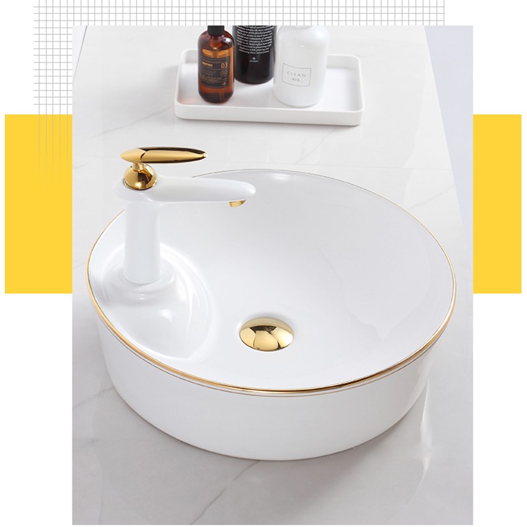 Nhà cửa & Đời sống > Đồ dùng phòng tắm > Bồn cầu, ghế và nắp bồn cầu || LAVABO VIỀN VÀNG PHONG CÁCH HIỆN ĐẠICòn hàng