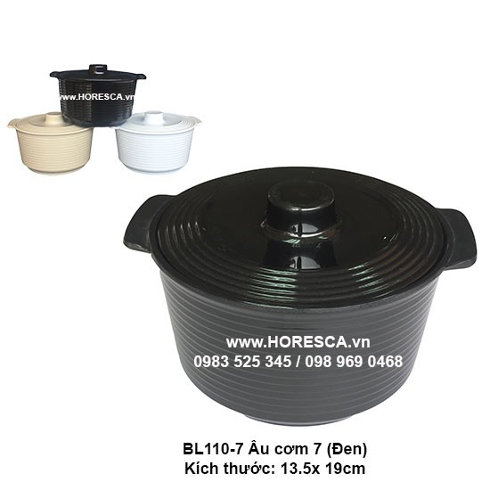 LB110-7 Thố 2 quai 7 có nắp (Black+C)
