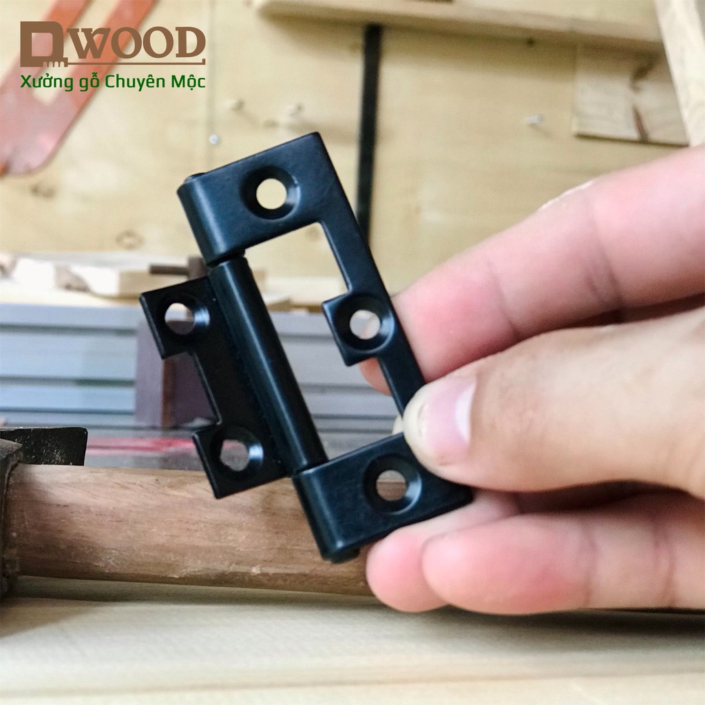 Bản lề 1 chiều Dwood sơn đen 65x25 cho cánh cửa