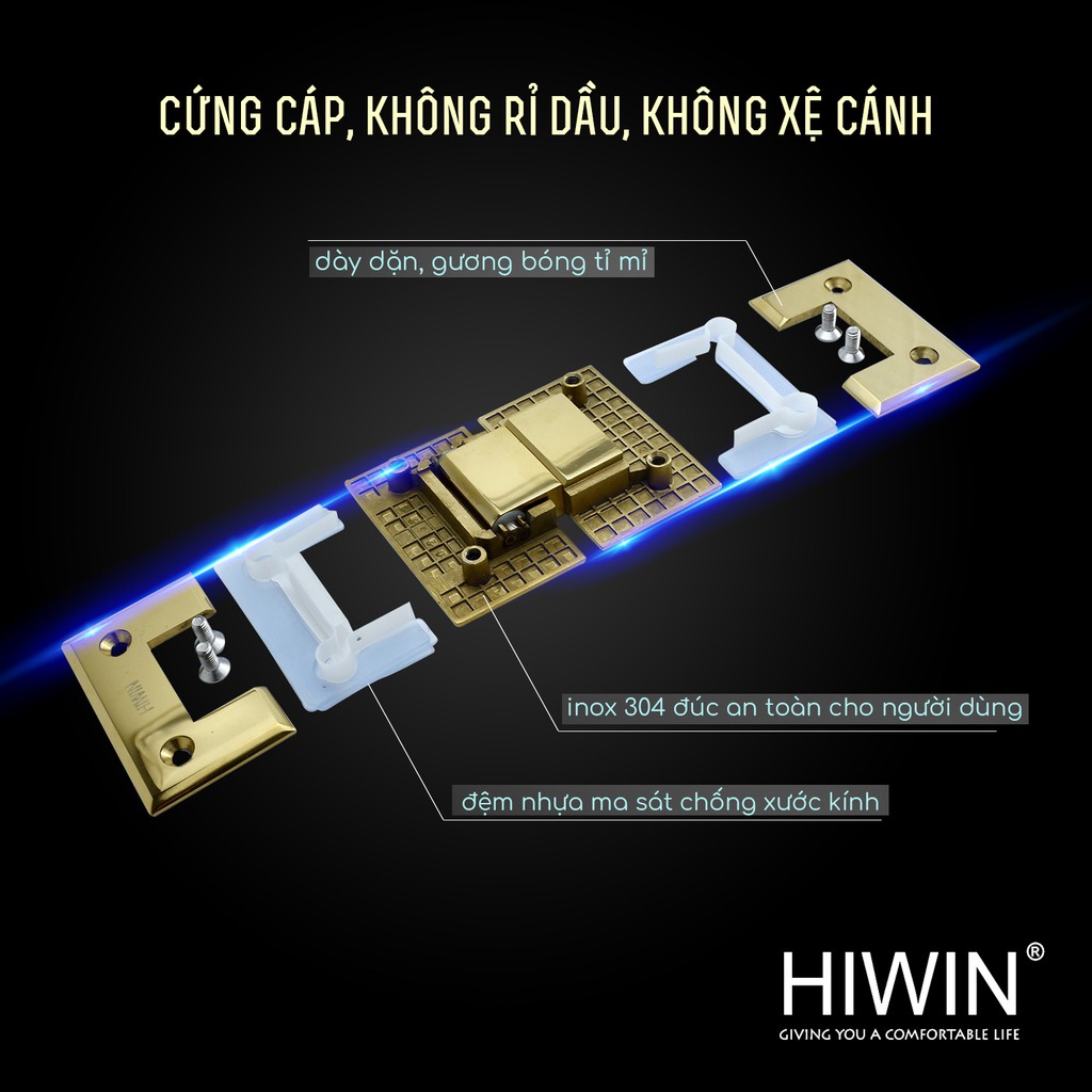 Nhà cửa & Đời sống > Đồ dùng phòng tắm > Khác || Bản lề 180 độ kính kính cabin tắm cạnh vát inox 304 đúc mạ vàng cao cấp Hiwin HG-007GCòn hàng