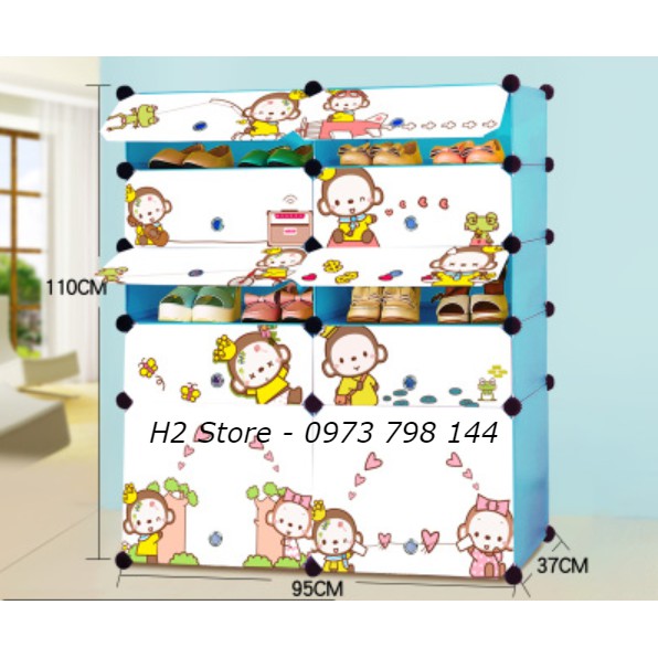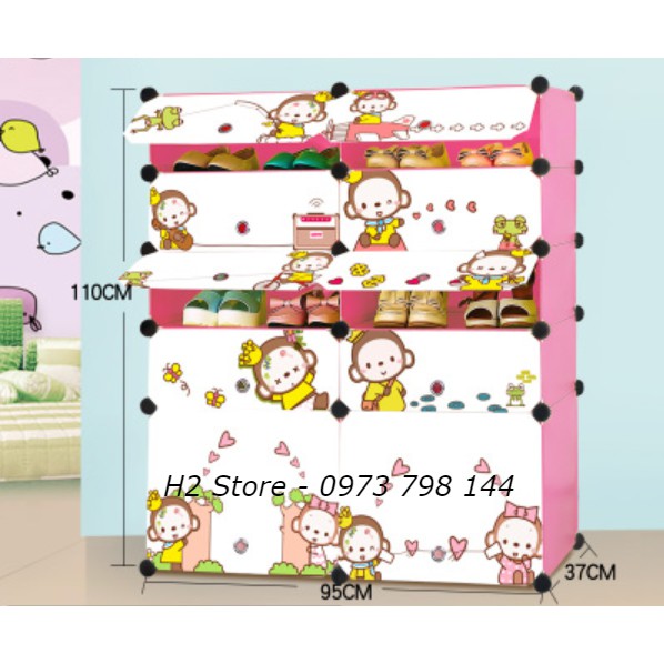 [LẺ BẰNG SỈ] - TỦ NHỰA LẮP GHÉP ĐỂ GIÀY ĐA NĂNG 2 Ô TO + 8 Ô NHỎ HÌNH KHỈ CUTE