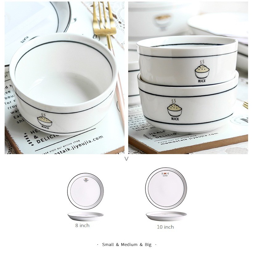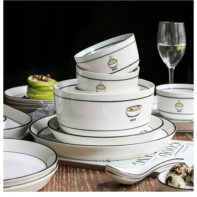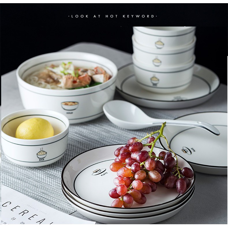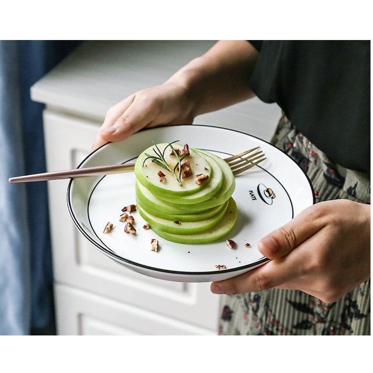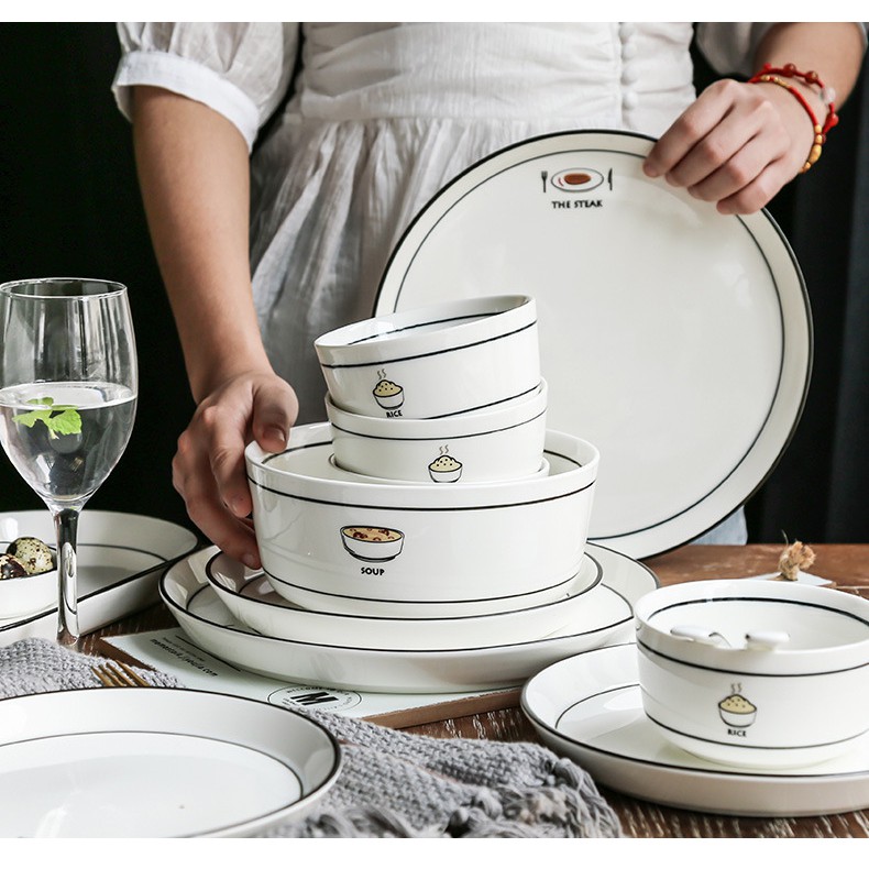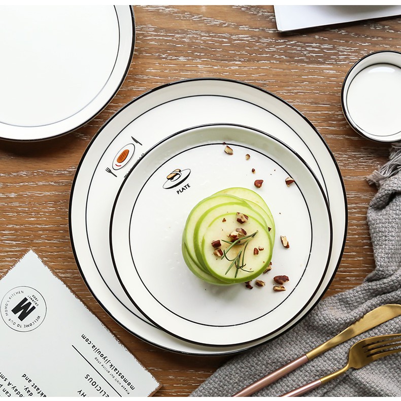 Nhà cửa & Đời sống > Bộ đồ bàn ăn > Dĩa || [LẺ] Bát đĩa trắng viền đen họa tiết món ăn cao cấp Bắc ÂuCòn hàng