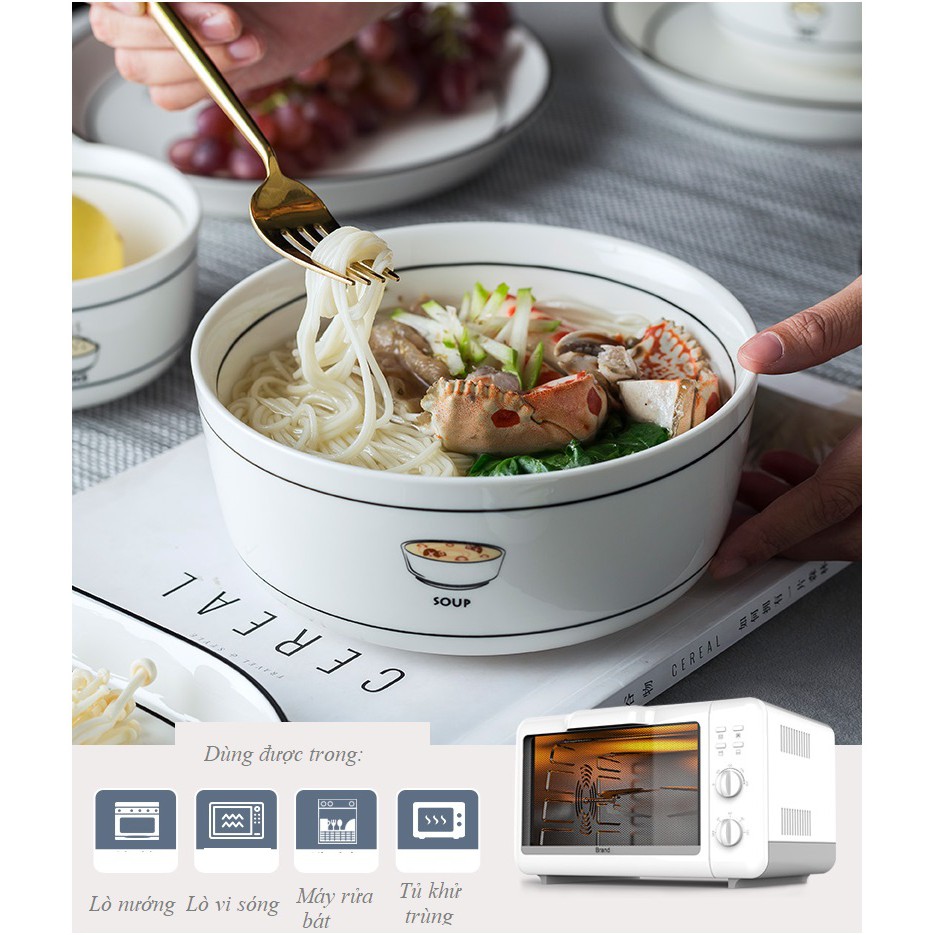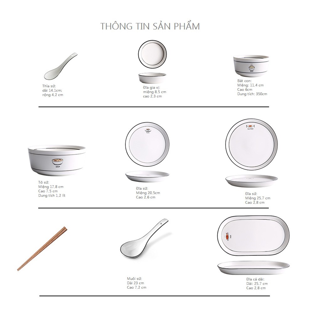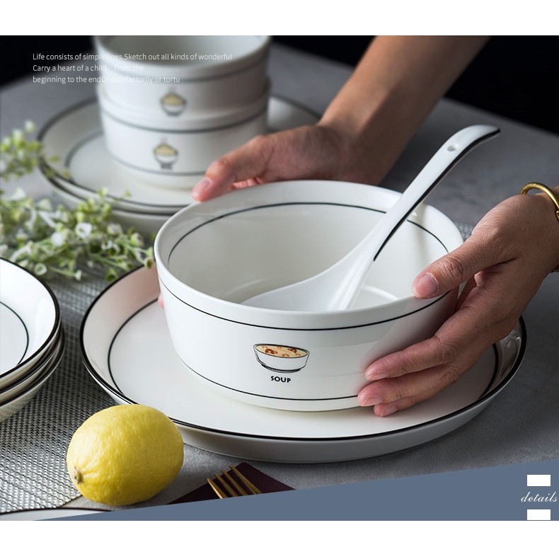 Dành cho các Khách hàng yêu thích phong cách bàn ăn sang trọng phong cách Bắc Âu hiện đại. Bộ bát đĩa dành cho 2-10 người ăn đơn giản từ màu trắng tinh khôi đến kiểu dáng, đầy đủ các loại bát đĩa cần thiết cho 1 bữa cơm đại gia đình hoàn hảo. Họa tiết đẹp mắt kích thích vị giác cho mỗi bữa ăn càng thêm ngon miệng, đẹp mắt.Bộ bát sứ dùng được trong: Lò vi sóng, máy rửa bát, tủ khử trùng (không dùng trong lò nướng để tránh giảm tuổi thọ của sứ)