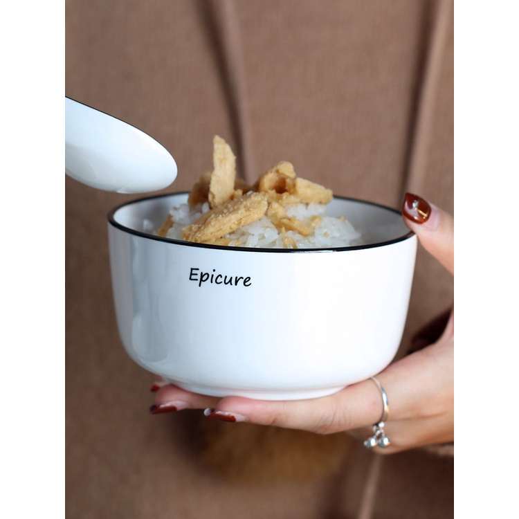 Giới thiệu [LẺ] Bát đĩa trắng viền đen in chữ cao cấp Bắc Âu