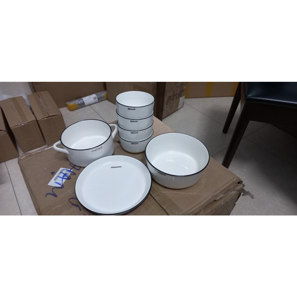 Nhà cửa & Đời sống > Bộ đồ bàn ăn > Dĩa || [LẺ] Bát đĩa trắng viền đen in chữ cao cấp Bắc ÂuCòn hàng