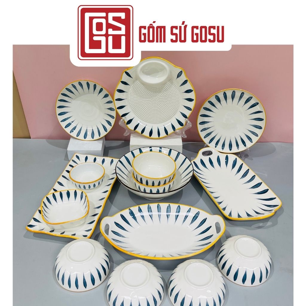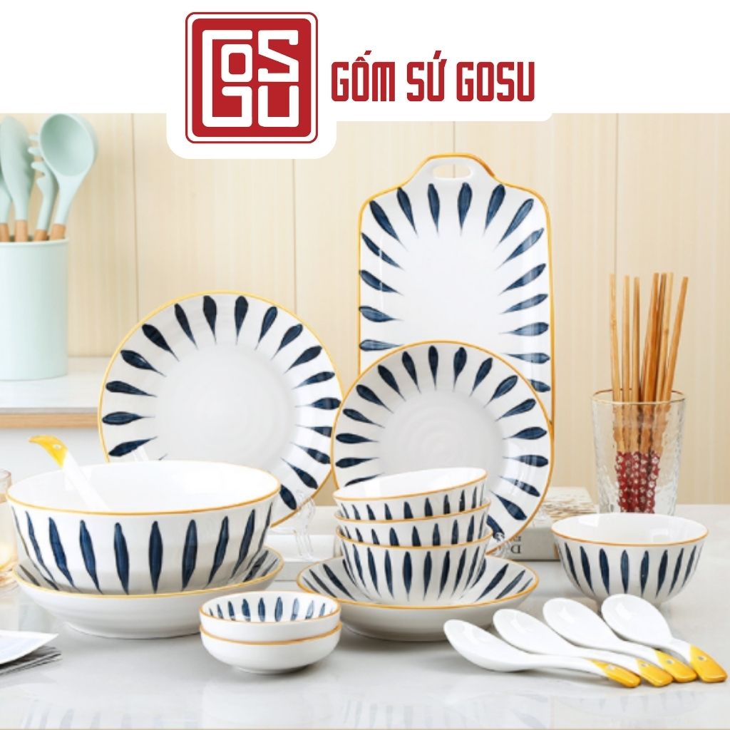 🌿Bộ sưu tập bát đĩa phong cách Nhật Bản gây ấn tượng bằng kiểu dáng thiết kế độc đáo, tông màu tươi sáng mang tới không gian phòng bếp nhà bạn sự hiện đại và ấm cúng, viền vàng họa tiết phẩy trúc.