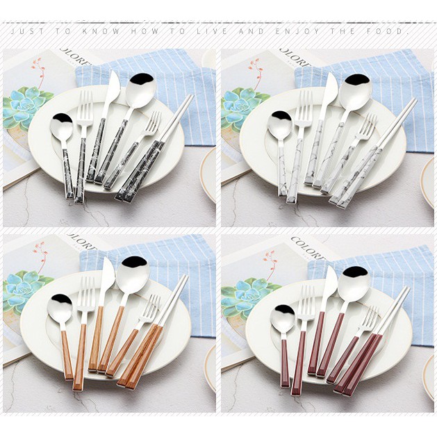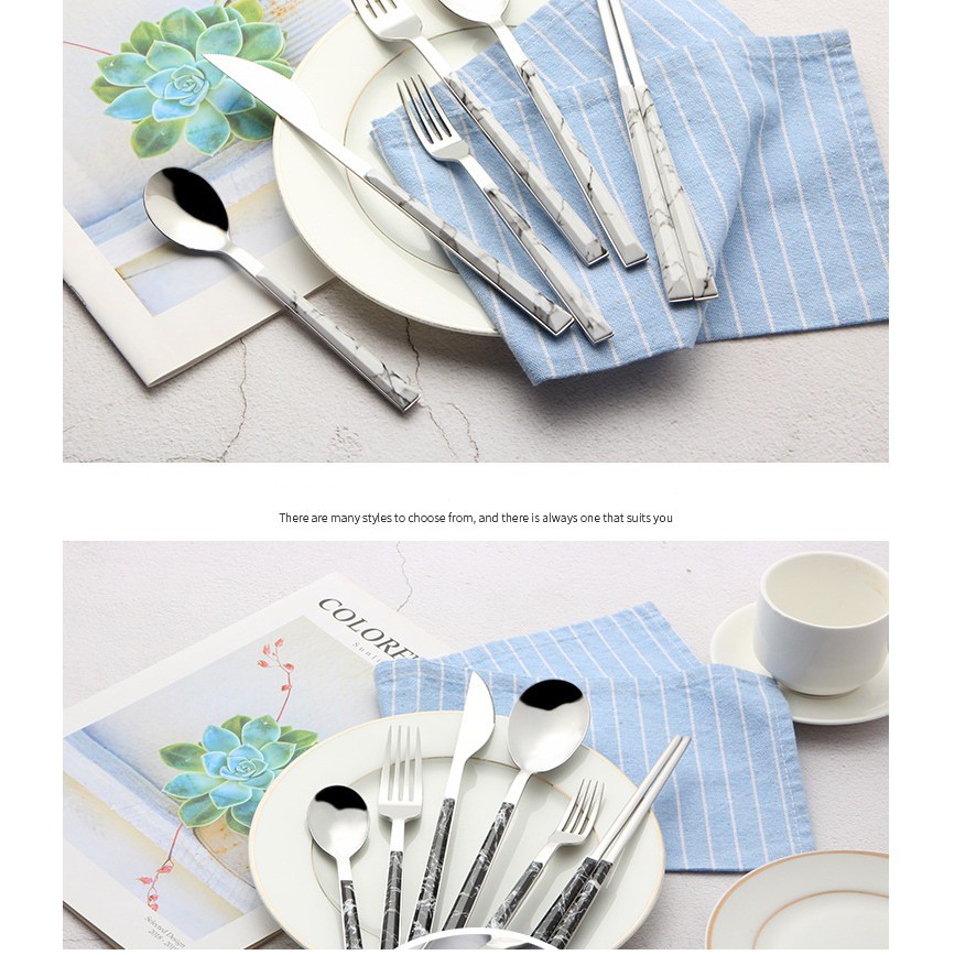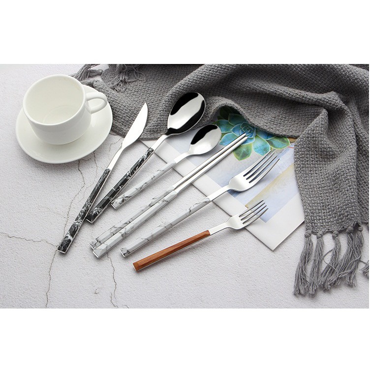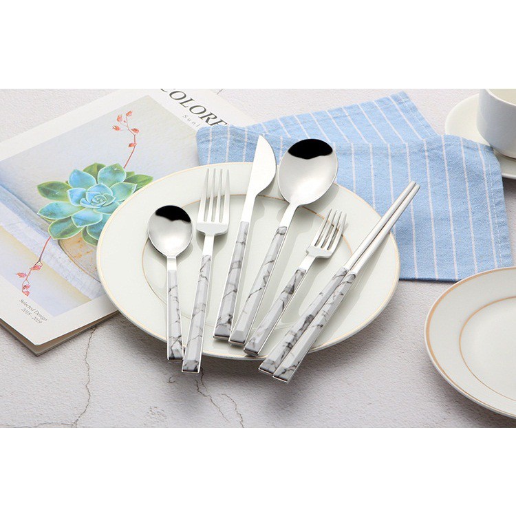 Nhà cửa & Đời sống > Bộ đồ bàn ăn > Bộ dao kéo || [LẺ] Bộ dao thìa dĩa inox 304 họa tiết vân đá cẩm thạchCòn hàng