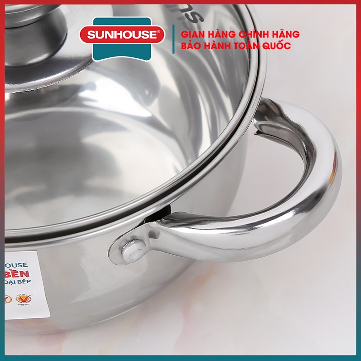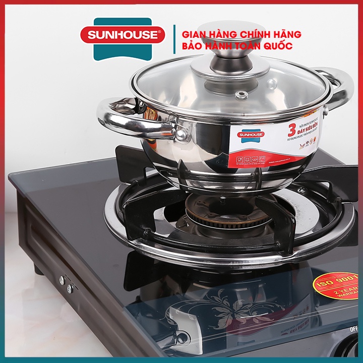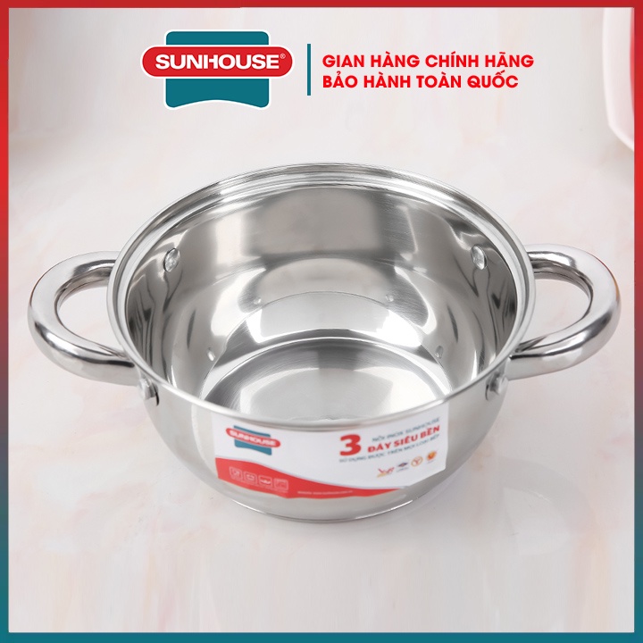 Lẻ bộ nồi inox bếp từ 3 đáy cao cấp SUNHOUSE SH22116-SH22124-2022 16 20 24 CM hàng chính hãng bảo hành toàn quốc