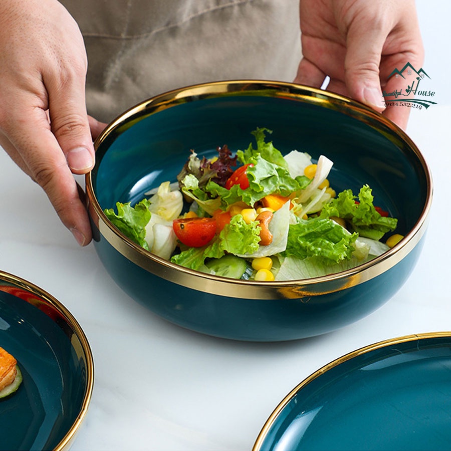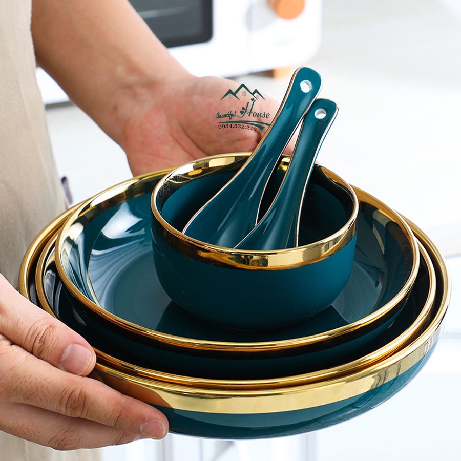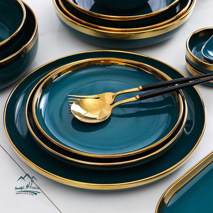 Nhà cửa & Đời sống > Bộ đồ bàn ăn > Dĩa || [LẺ CHI TIẾT] Bộ Bát, Đĩa Sứ Màu Xanh Cổ Vịt - Sứ Cẩm Thạch Viền Vàng 24k Sang TrọngCòn hàng