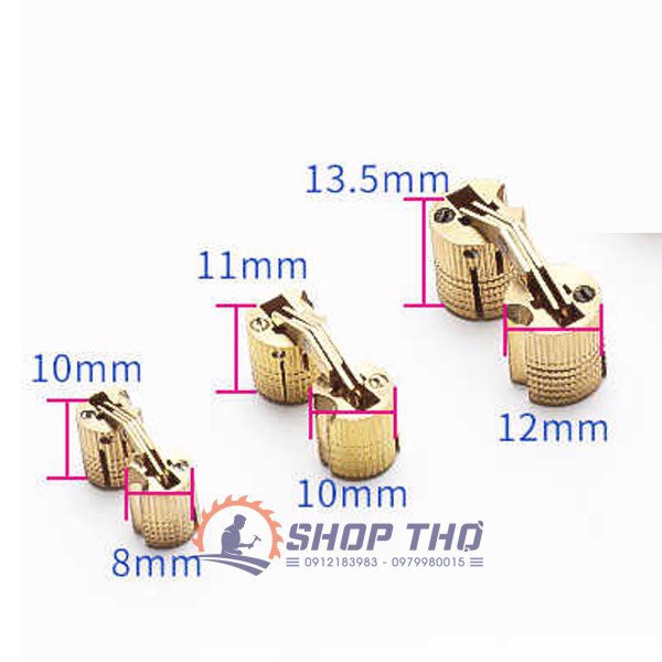 Độ mở 180 độ, có 3 kích thước là 8, 10 và 12mm