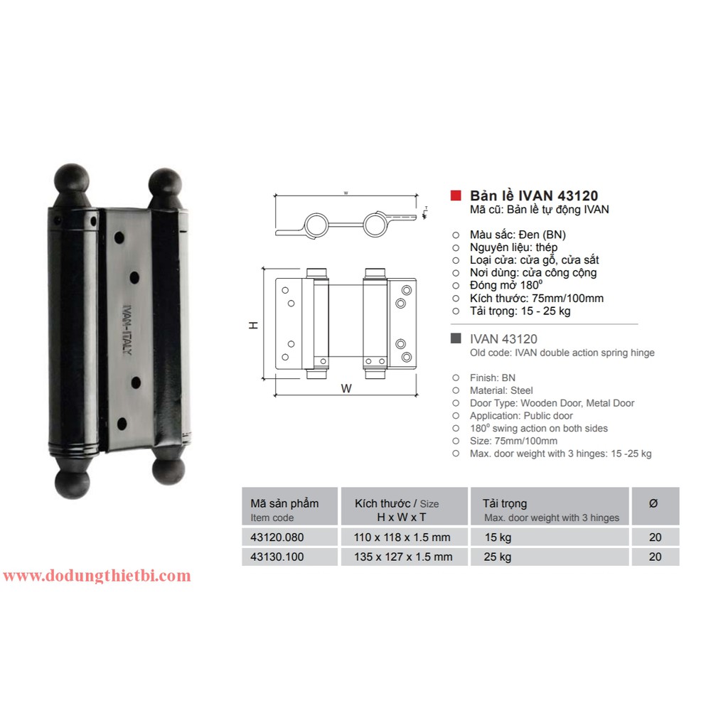 Bản lề cửa 2 chiều inox Ivan sản xuất từ inox không rỉ, sử dụng cho cửa đóng mở 2 chiều, chịu được trọng lượng cửa từ 20 - 25 kg.