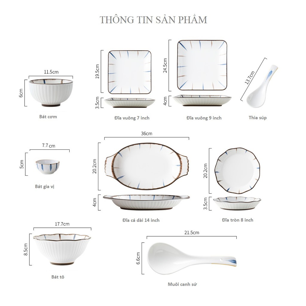 Bát gốm men bóng họa tiết vẽ tay phong cách Nhật.Kích thước các món và số lượng món đều có trong hình mô tả.