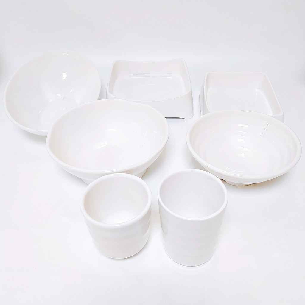[LẺ GIÁ SỈ] Bộ bát đĩa phong cách Nhật Bản 100% melamine màu trắng trang nhã