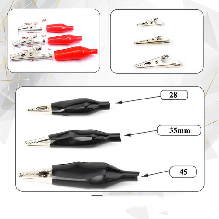 [Bán lẻ] Kẹp cá sấu cho dây dò thử điện, kẹp ắc quy nhiều kích thước 2 màu đỏ - đen vỏ cao su cách điệnĐặc điểm nổi bật: