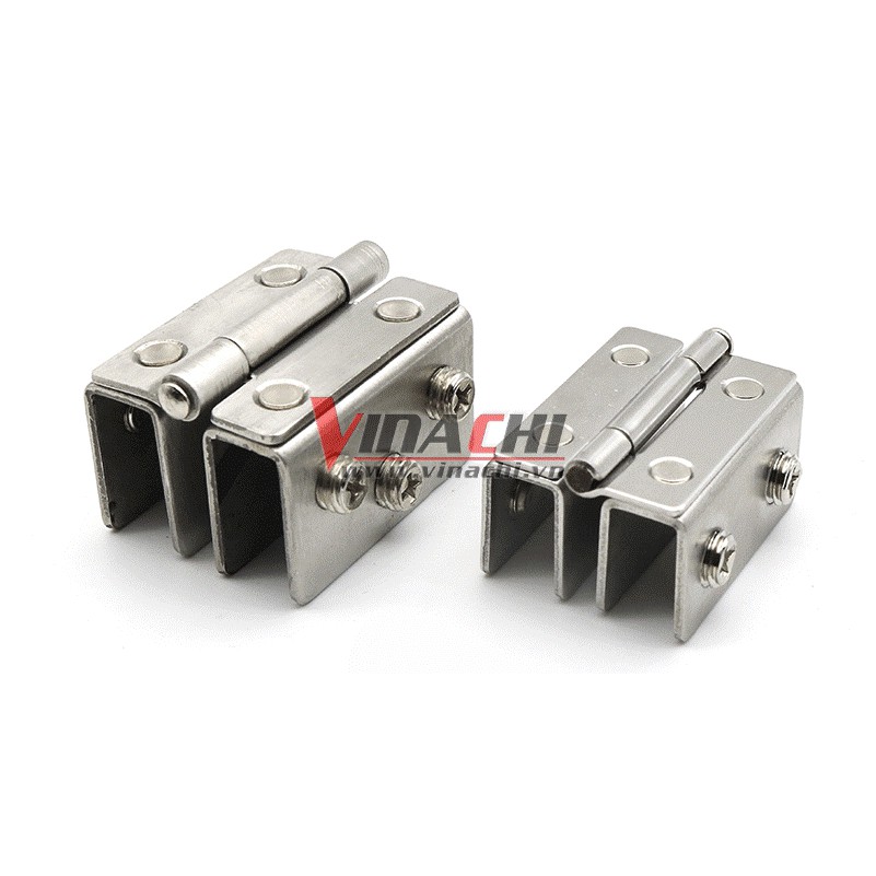- Công dụng của Bản lề kẹp cửa kính inox là kết nối hai tấm kính lại với nhau và dễ dàng đóng mở.