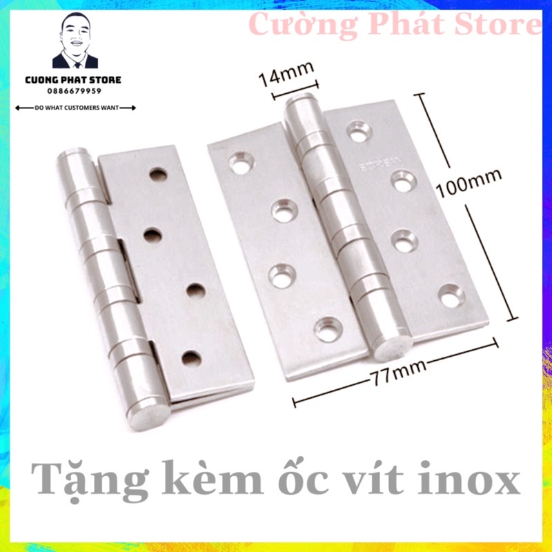 Bản lề lá 10cm dày dành cho cửa gỗ, nhôm 2 màu vàng trắng inox dày có kèm ốc vít - giá 1 chiếc
