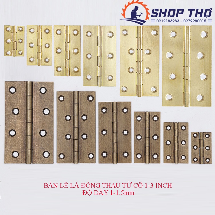 Giới thiệu Bản lề lá chất liệu đồng thau màu vàng , màu đồng cỡ 1ich-3inch