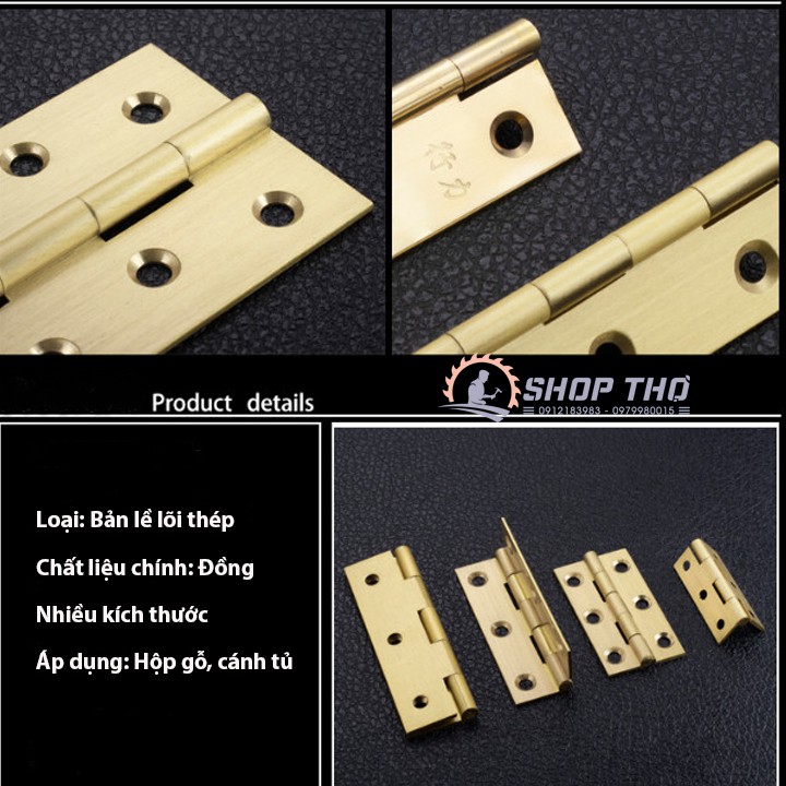 Bản lề lá chất liệu đồng thau màu vàng , màu đồng cỡ 1ich-3inch loại dày là sản phẩm bản lề lá rất sắc nét, đầu lỗ bắt vít được roa miệng nên vít sẽ âm xuống, khi lắp đánh âm phần gỗ tại vị trí bản lề đúng bằng độ dày của bản lề..Thông tin chi tiết tham khảo hình ảnh