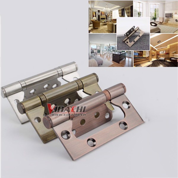 Bản lề cấu tạo 2 lá làm từ inox 3 sắc mầu, sẽ giúp cho những sản phẩm nội thất có độ thẩm mỹ cao, bền theo thời gian, sang trọng trên từng sản phẩm. Sản phẩm sử dụng cho nhiều loại cửa, dễ dàng lắp, khỏe và chắc hơn so với bản lề truyền thống.
