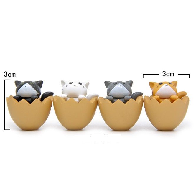 (Bán lẻ !!! ) Mô hình mèo con ngồi trong vỏ trứng (trắng/vàng) trang trí tiểu cảnh, bonsai, móc chìa khóa, DIY