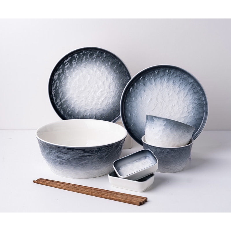 (Lẻ món)Bát đĩa sứ cao cấp Vân Đá Thạch Ghi xám , bát đĩa tô phong cách Bắc Âu, Đĩa sứ beaf steak ( bít Tết) sang trọng