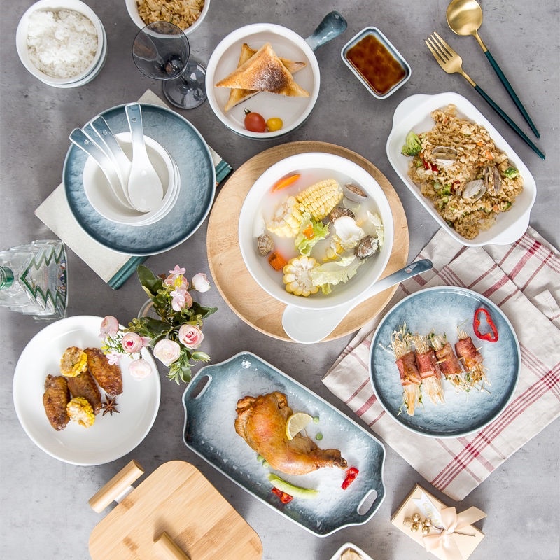 Nhà cửa & Đời sống > Bộ đồ bàn ăn > Dĩa || (Lẻ món)Bát đĩa sứ cao cấp Vân Đá Thạch Ghi xám , bát đĩa tô phong cách Bắc Âu, Đĩa sứ beaf steak ( bít Tết) sang trọngCòn hàng