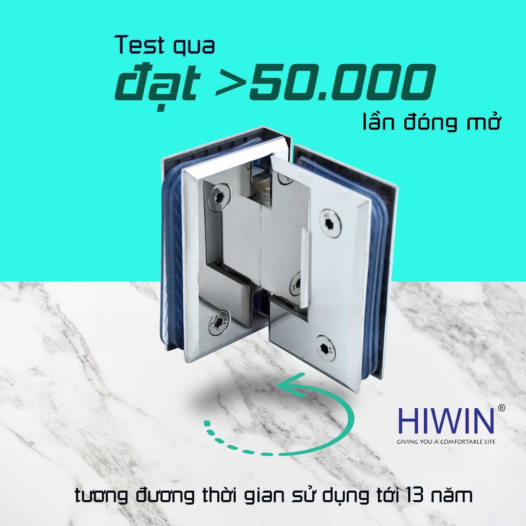 Giới thiệu Bản lề phòng tắm kính 90 độ cạnh vát mặt gương inox 304 Hiwin HG-011 (dày 5 mm)