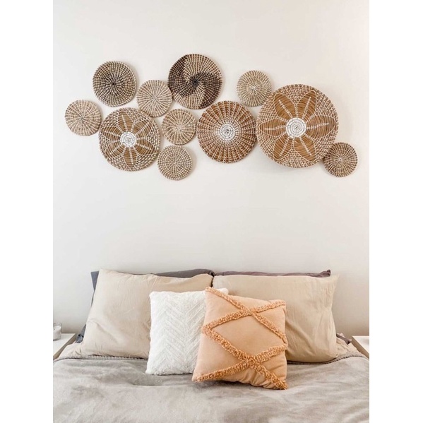 Bộ đĩa cói treo tường tạo không gian thanh lịch, ấm cũng, phù hợp với quán cà phê, homestay, nhà chung cư ...