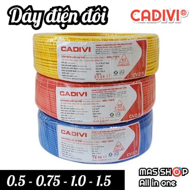 Thiết Bị Điện Gia Dụng > Mạch điện & Phụ tùng > Ổ cắm điện & Dây nối || [Bán lẻ theo 1 mét] Dây điện đôi mềm VCMD CADIVI / 2x0.5 - 2x0.75 - 2x1.0 - 2x1.5 (mm)Còn hàng