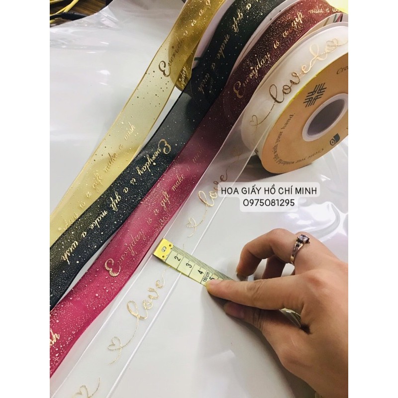 [Bán lẻ theo m] Ruy băng voan in hoa văn sang trọng