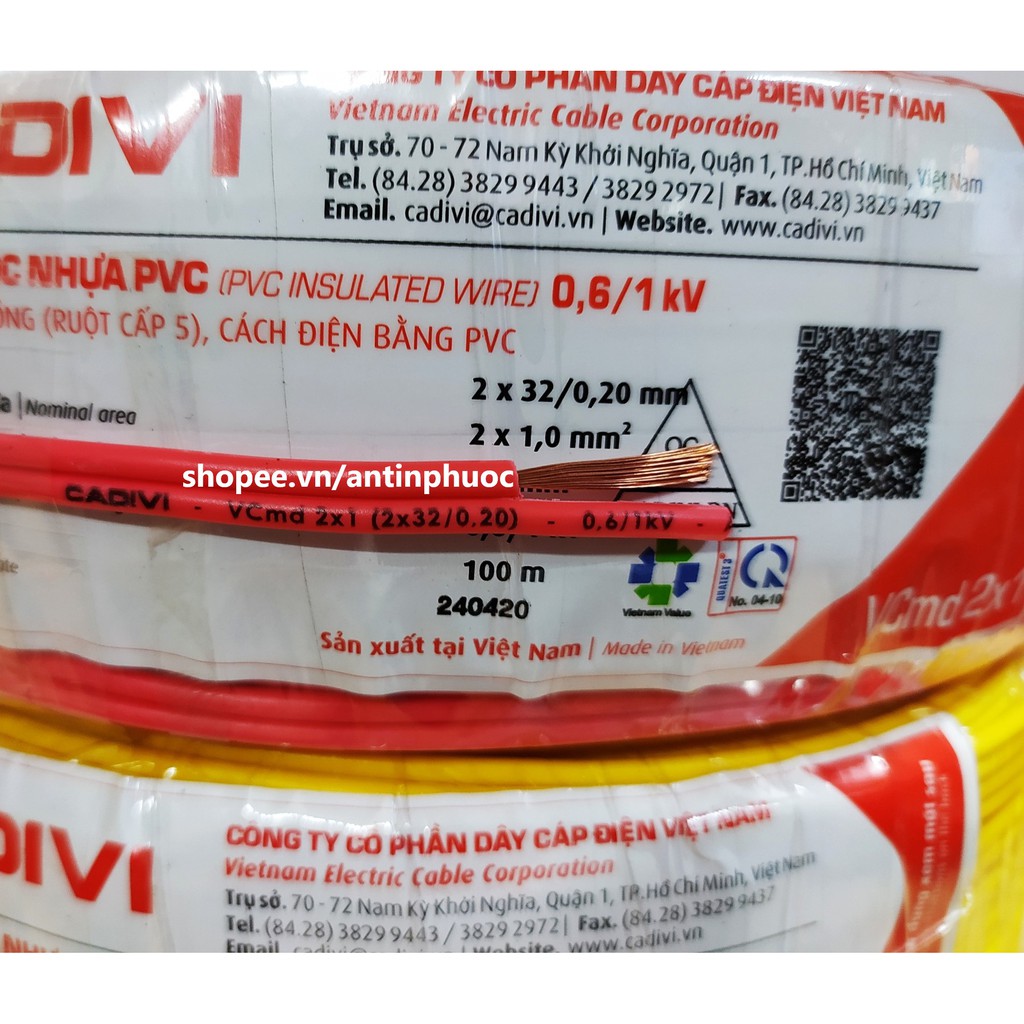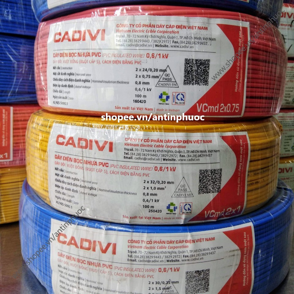 +++ Quý khách có nhu cầu dây có tiết diện to hơn dùng cho tải lớn . Mời tham khảo dâycadivi vcmd 2x50 , vcmo 2x1.0mm , 2x2.5mm trong shop . Do dây điện có trọng lượng khá nặng ,nên shop phải tách riêng để tối ưu chi phí vận chuyển cho quý khách .