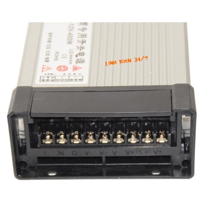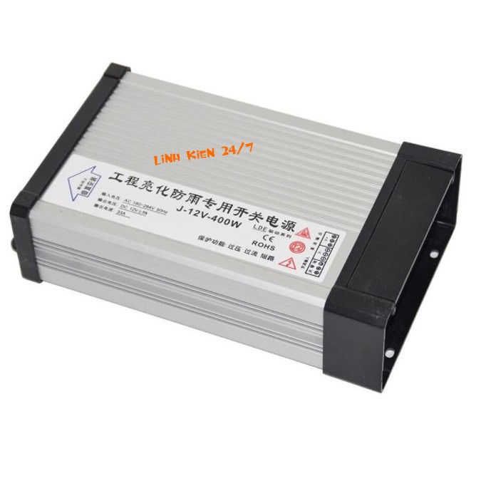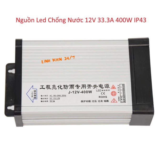 - Nguồn 12v 400w chống nước ngoài trời chuyên dùng cấp nguồn cho bảng led, led thanh , led dây, led hắt, đèn led dây, hộp đèn led, các công trình chiếu sáng và trang trí. Nguồn chống nước với công suất 400w dùng tốt trong nhà hoặc ngoài trời mà không cần lắp thêm hộp che hay tủ điện vì nguồn được thiết kế vỏ hộp nhôm tản nhiệt tốt và chống được nước mưa ở mức IP43.
