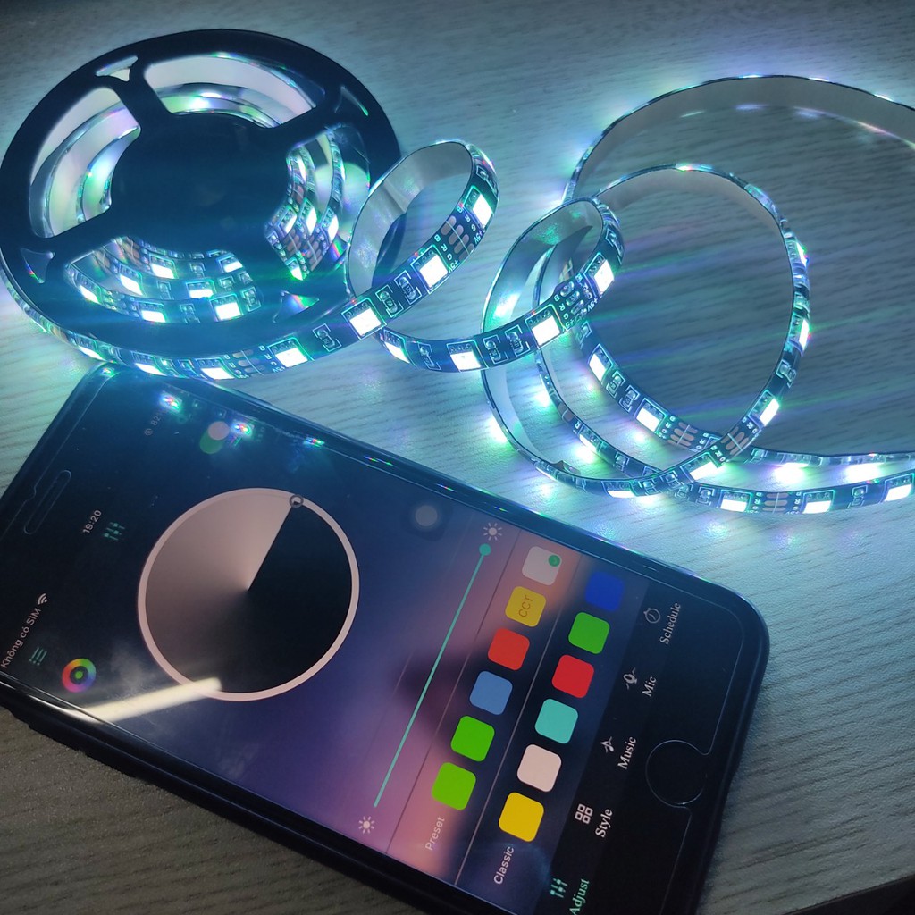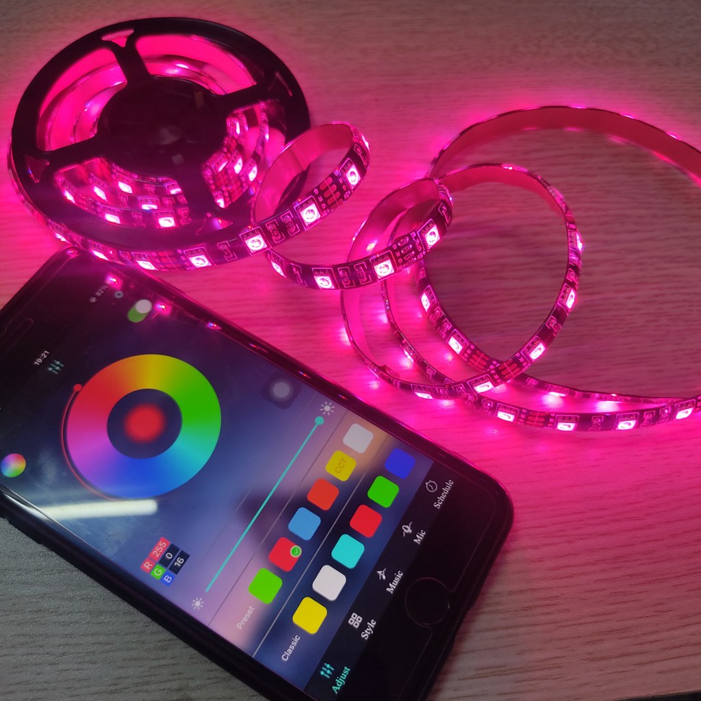Giới thiệu Dây Led Strip 5v RGB Dán Cạnh Bàn Trang Trí Góc Làm Việc Chỉnh Màu Qua App Điện Thoại
