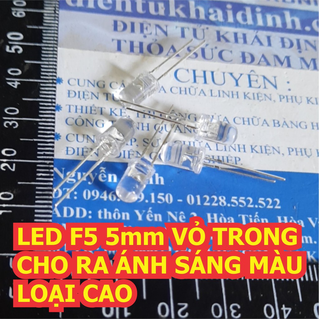 LED F5 5mm VỎ TRONG CHO RA ÁNH SÁNG MÀU, LOẠI CAO ĐỎ/VÀNG/TRẮNG/XANH LÁ/XANH DƯƠNG (GÓI 100 CON) kde3736