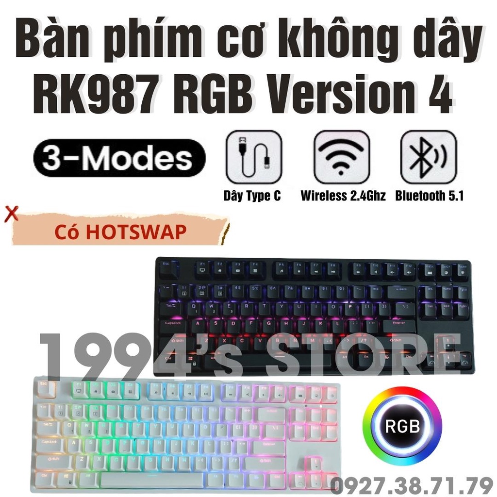 Giới thiệu [Led RGB - HOTSWAP] Bàn Phím Cơ Không Dây Royal Kludge RK987 Version 4 Wireless 2.4G + Bluetooth 5.1 + Có dây Type C