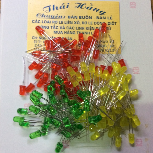Led xanh ,đỏ ,vàng &5 bán mỗi loại 100 chiếcDùng nhiều trong quảng cáo ,trang trí ,các mạch thử vv