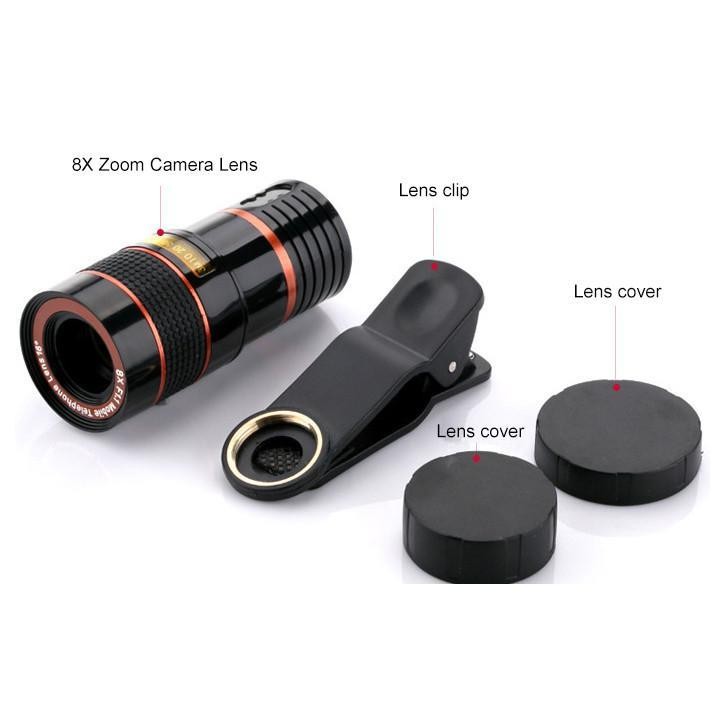 - Bao gồm: 1 kẹp, 3 ống lens zoom 8X