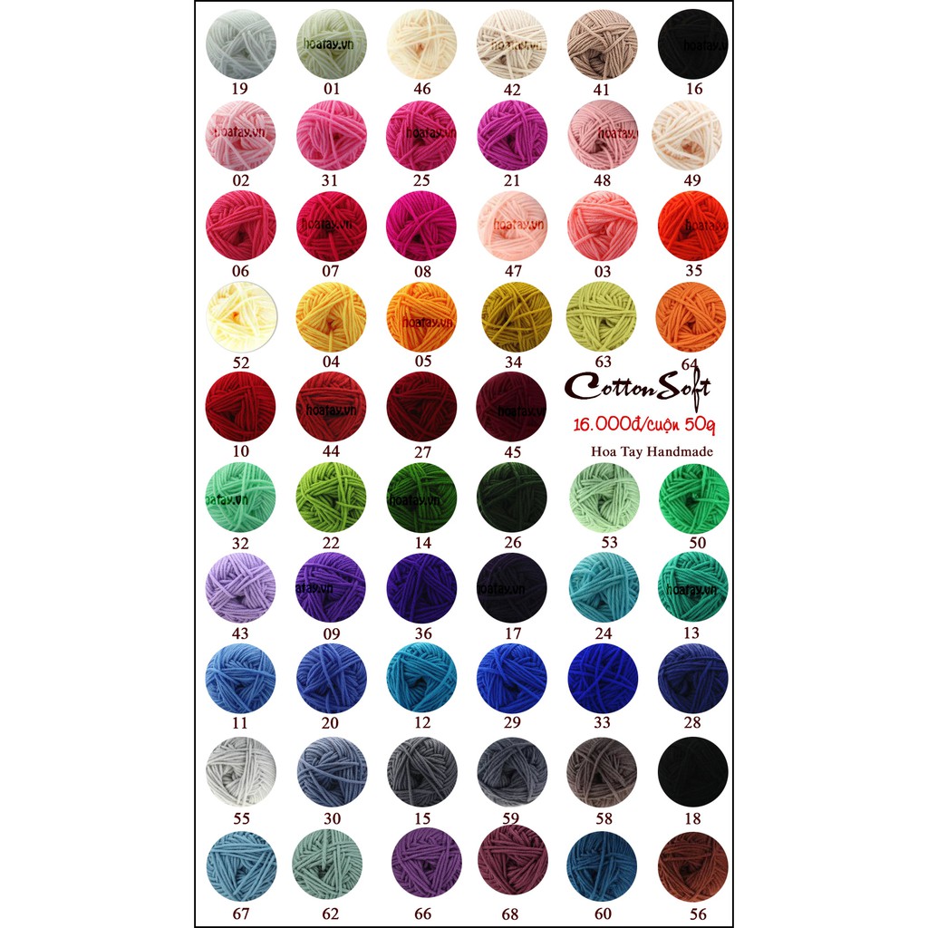 Sở thích & Sưu tầm > Dụng Cụ May Vá || Len Cotton Soft đan móc nón mũ, khăn, thú bông, bảng màu từ 46 đếnCòn hàng