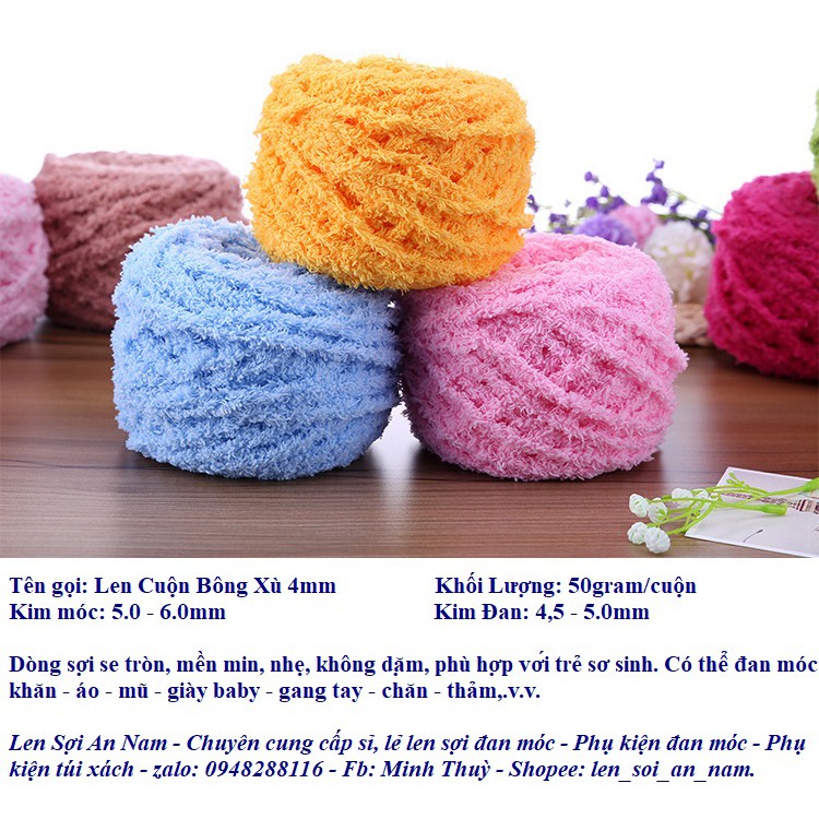 Sở thích & Sưu tầm > Dụng Cụ May Vá || Len Cuộn Bông Xù Size 4mm - 50gram/cuộnCòn hàng